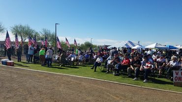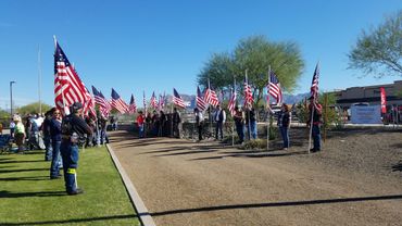 The 2024 Veterans Tribute will be held on November 11, 2024, immediately following the Apache Junction Veterans Day Parade at the Apache Junction Area Chamber of Commerce's parking lot 11:00 a.m. Please join us in honoring area veterans.